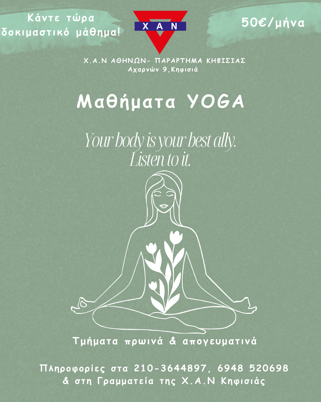 ΜΑΘΗΜΑΤΑ YOGA στη ΧΑΝ ΚΗΦΙΣΙΑΣ