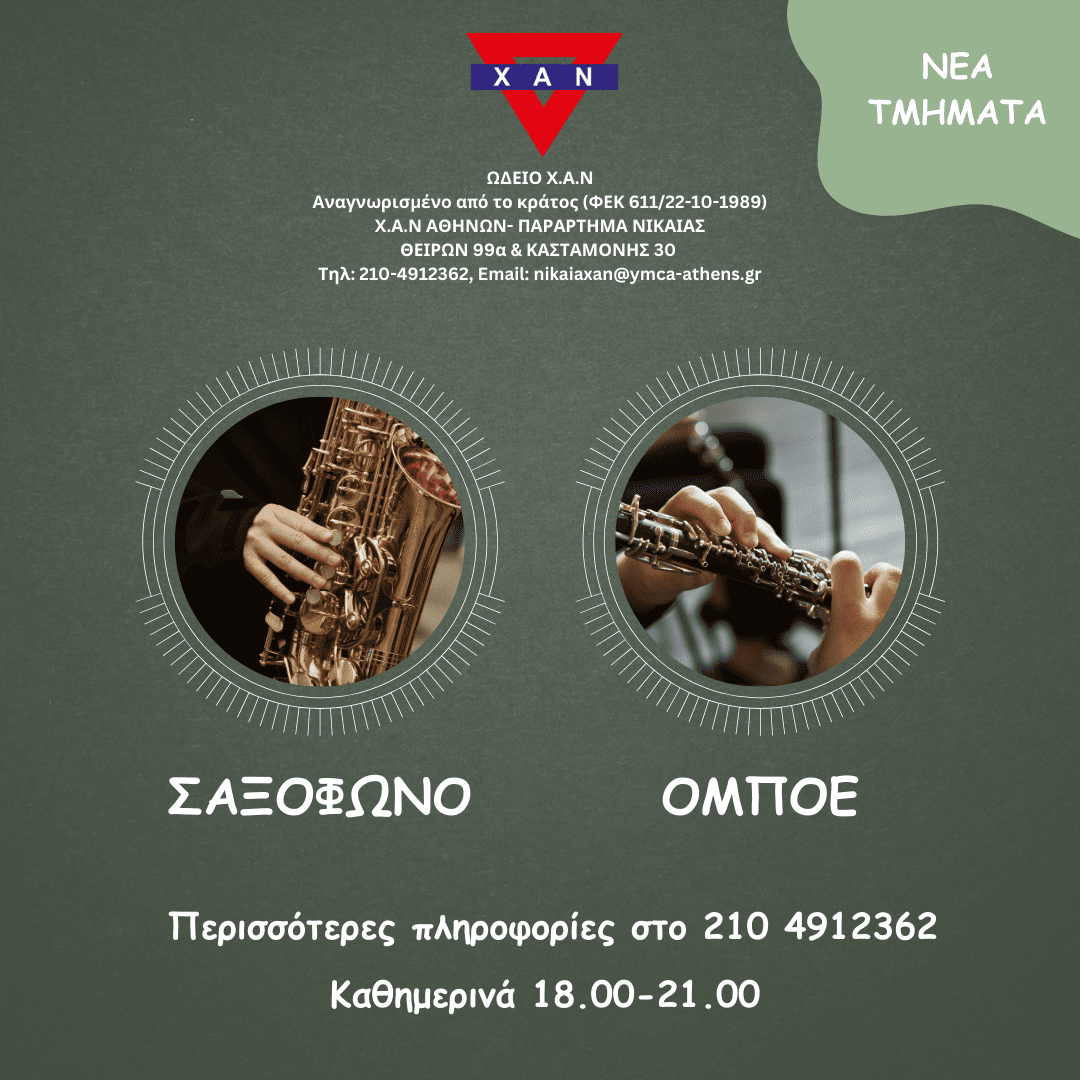 Ωδείο Χ.Α.Ν στη Νίκαια- Μαθήματα Σαξοφώνου & Όμποε